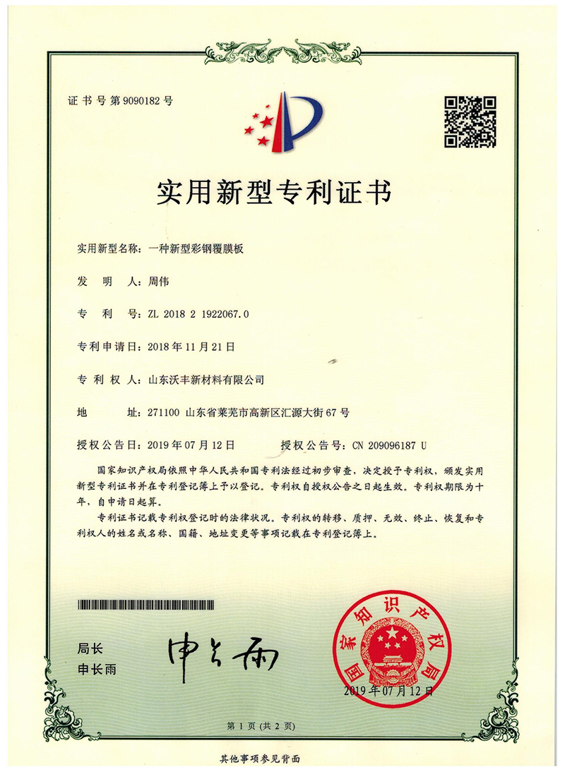 一種新型彩鋼覆膜板