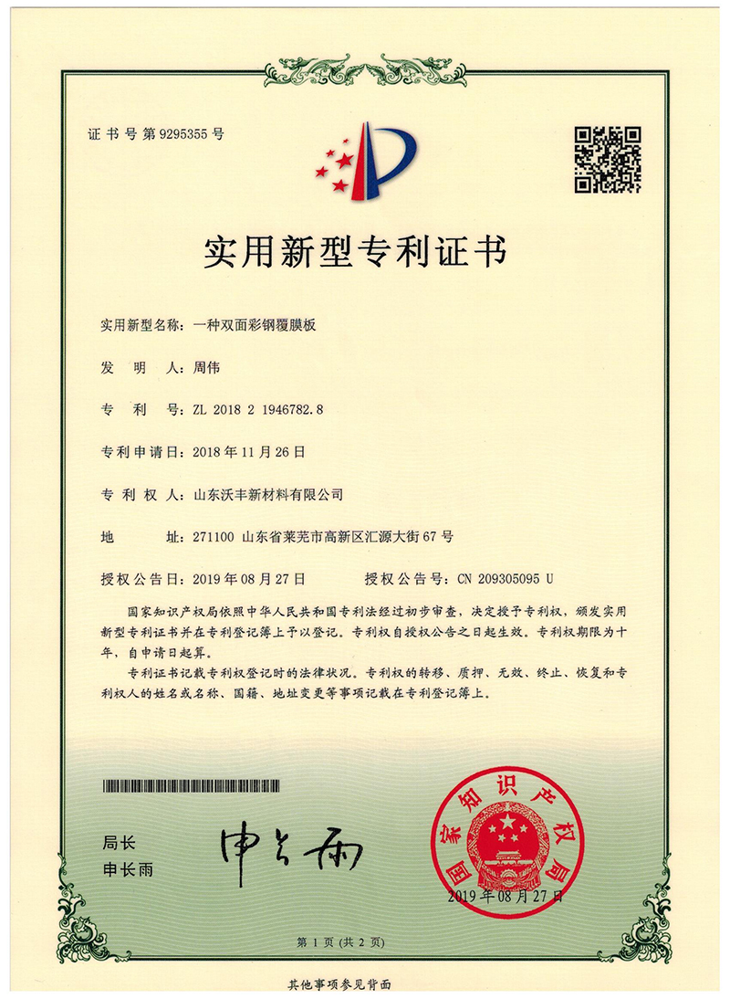 一種雙面彩鋼覆膜板